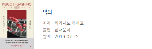 제가 워낙 히가시노 게이고의 묘사를 좋아하는 편이라
